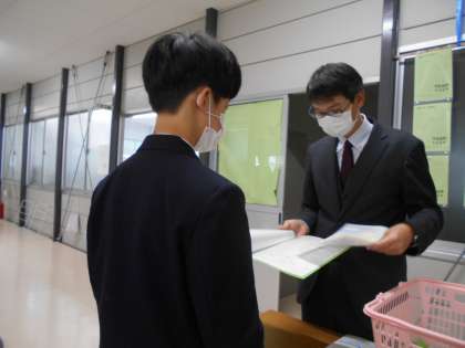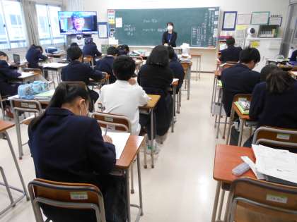 担任は通知表を示しながら、生徒一人一人に成果と課題を伝えていました。通知表を渡し終えたクラスでは、担任が冬休みの過ごし方等を再確認していました。