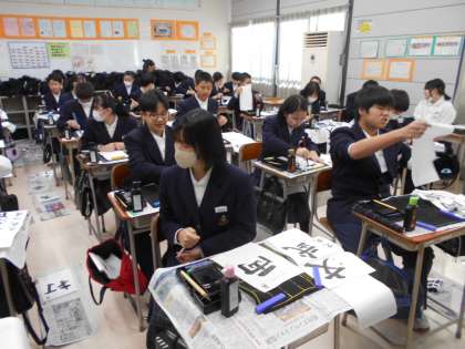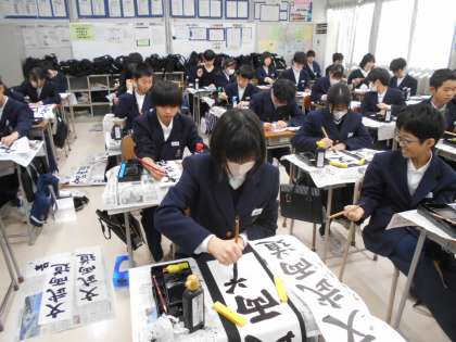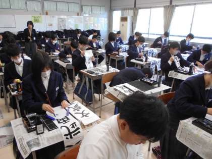 1年生は和気あいあいと、楽しそうに取り組む人が多かったです。書写は集中して書くことが大事なのですが…。