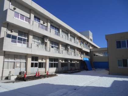 工事現場の防音シートが取り外され、新校舎の様子がかなり見えるようになりました。写真手前は旧校舎の中館ですが、その向こうの新築部分(ブルーシートがかかっている部分)ときれいにつながっています。