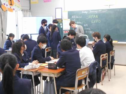 1組の英語ではALTの先生と「日本の文化」についてコミュニケーションを図る活動を行っていました。