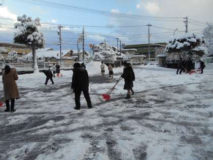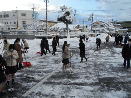 写真は今朝、除雪してくれた2年1組やボランティアの人たち