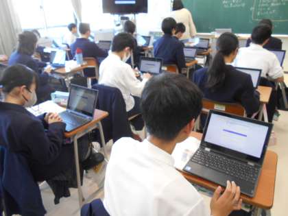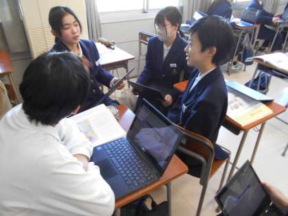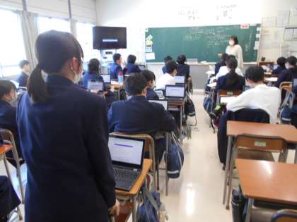 1年2組では、道徳の授業で「情報モラル」について考えました。友人がSNSに悪口を書き込もうとする内容の資料を読んで、生徒は自分の考えをクロムブックに入力したり、近くの人と話し合ったりしました。今日考えたことを、実生活でも生かしていけるとよいです。