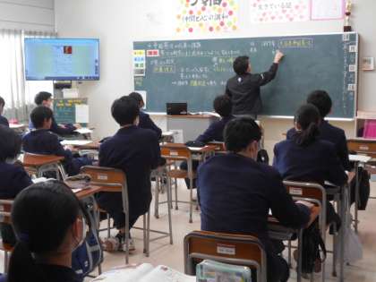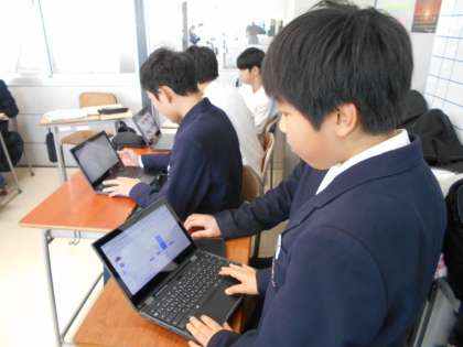 1組英語では、クロムブックを使って、英語で作成したアンケートを取り、グラフにまとめる作業を行いました。