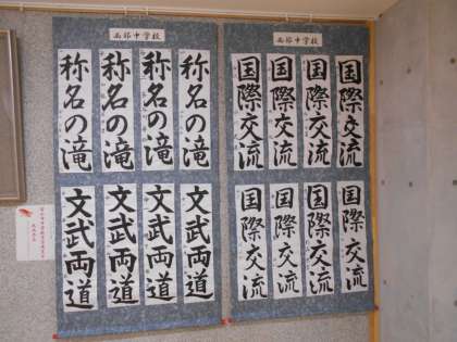 富山市中学校書写展覧会に展示された作品が、玄関ホールに展示してあります。来校された際にはご観覧ください。