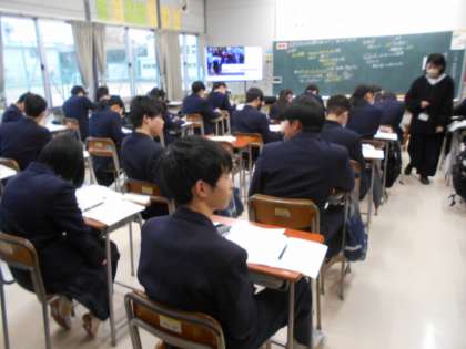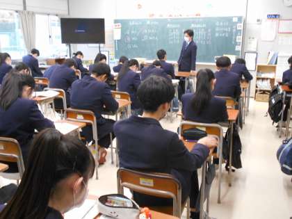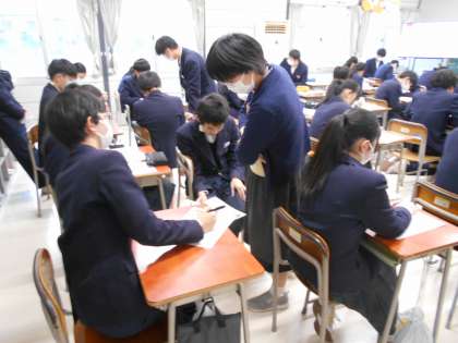1組英語では、学習プリントの内容について、先生に質問する様子が見られました。