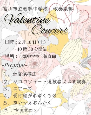 12月末のクリスマスコンサートが延期になったので、今週末にバレンタインコンサートとして開催します。