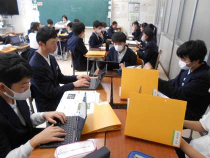 1学年は、先日行われた「13歳のワークショップ」のまとめ学習を行いました。このまとめを使って、参加した講座の内容を他の人に伝えるための発表会が行われます。