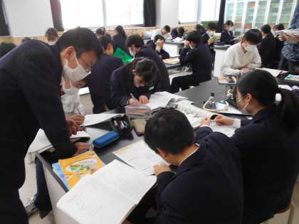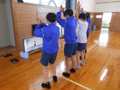 2組保健体育ではダンスを練習していました。動画のダンスをヒントに、振り付けはそのままで曲を変えてみたり、曲はそのままで振り付けを多少変更したりと、グループごとに工夫することになっています。