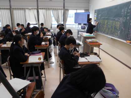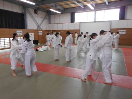 1組保健体育の柔道では、ペアになって体の崩しとさばきを練習しました。女子も柔道がなかなか様になっていました。