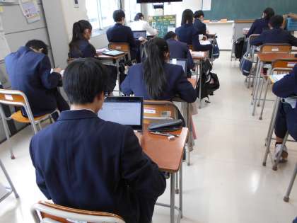 写真左から1組保健体育、2組歴史、3組総合的な学習の時間の様子