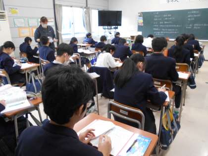 どのクラスも来週の学年末考査に向けて、範囲を進めたり、既習事項の復習をしたりしていました。