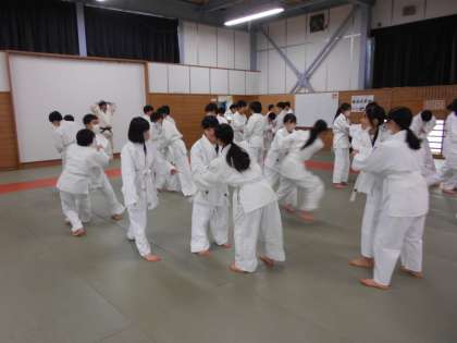 2組保健体育の柔道では、足さばきと相手を崩す動きの練習を行いました。