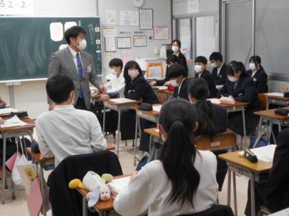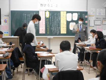 2年2組で、生徒指導主事と担任によるティームティーチング道徳を行いました。「美しい母の顔」という教材を通して、生徒はいろいろな思いを語り、家族について考えることができました。