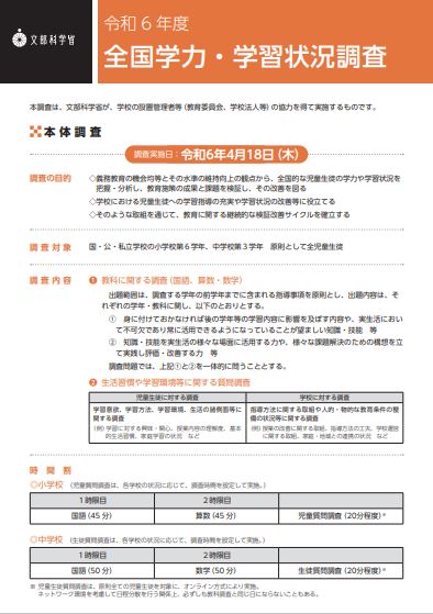 令和6年度全国学力・学習状況調査リーフレット(単ページ版)