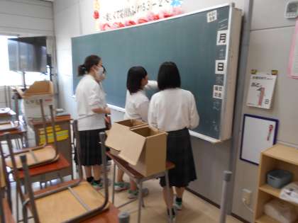 1年生は明日の卒業式に向けて、3年教室の飾り付けや清掃、受付準備等を行いました。新品のぞうきんが真っ黒になるくらい、がんばったようです。明日は3年生に喜んでもらえるといいですね。