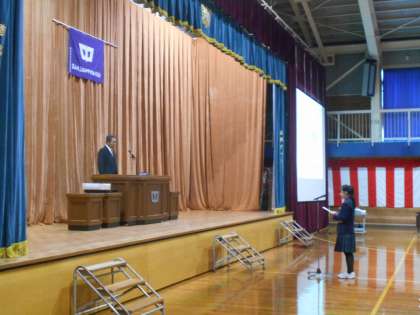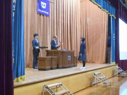 全校生徒が集まったときには富山県中学校体育連盟表彰、富山県中学校文化連盟表彰が行われました。また、西部中学校の校訓の「知性」「理想」「誠実」にちなんだ西中賞の表彰がありました。