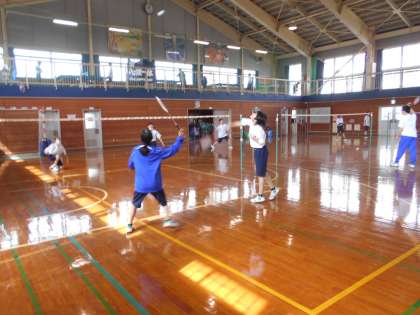 インフルエンザ罹患者が多い1年生。しかし、2組は元気で、体育の授業でバドミントンや卓球を楽しんでいました。