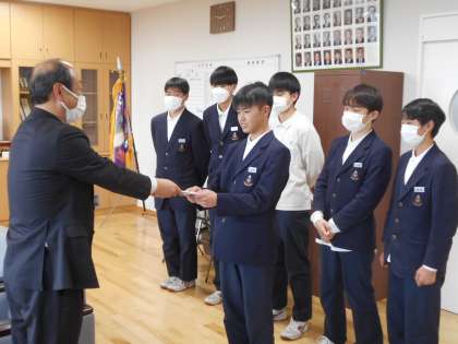 今週末、全日本少年春季軟式野球大会が静岡県で開幕します。今日は出場する野球部に対して、西部中育成会や教育後援会等の各団体からいただいた激励金を渡しました。
