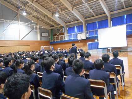 1年生に生徒会活動と部活動について知ってもらうため、生徒会入会式と部活動紹介を行いました。生徒会執行部と各専門委員会、各部活動から、活動についての説明と熱心な勧誘がありました。最後には1年生の代表生徒からお礼の言葉がありました。全学年で活動できる日が待ち遠しいですね!