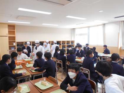 今日から新校舎で給食が始まりました。1年生にとっては中学生になって初めての給食です。量は小学生の頃よりも少し多くなっているかもしれません。