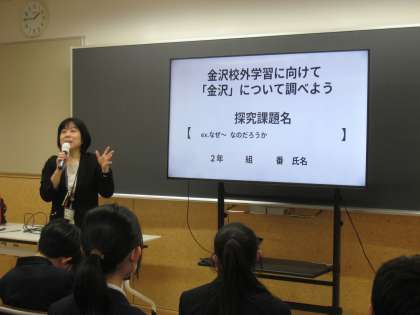 総合的な学習について学年集会を行いました。今後の予定や金沢校外学習の事前学習等を確認しました。