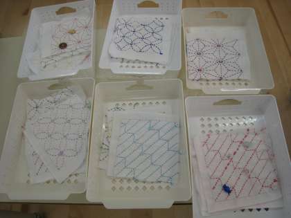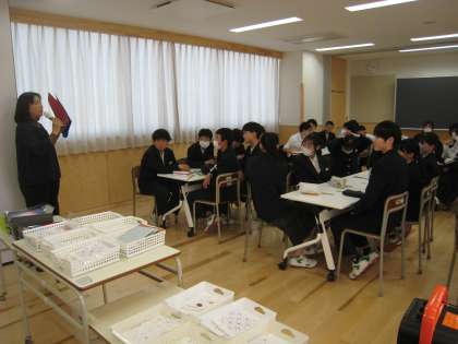 技術・家庭科の授業です。刺し子の学習です。