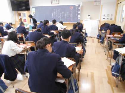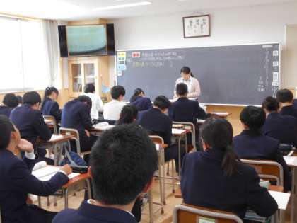 3組国語では、ワークをやり終えたら発表のテーマが分かるため、生徒は一生懸命に取り組んでいました。