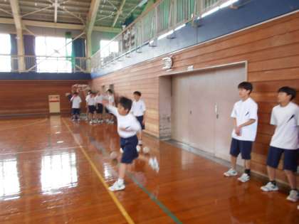 1組保健体育ではスポーツテストを実施中です。今日はハンドボール投げを行い、体育館の最も後ろから前面の壁に当てそうな人もいました。