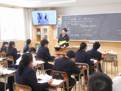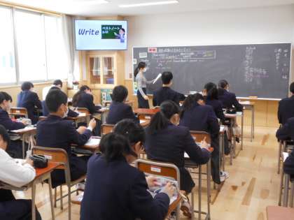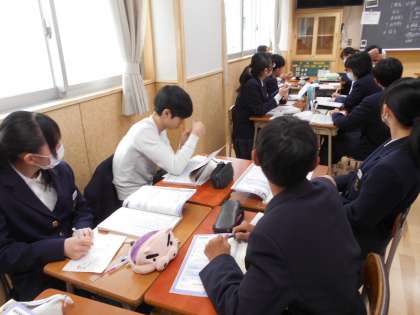 3組理科では、グループで協力し、元素記号を覚えようとしていました。