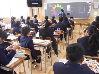 1組美術は色彩についての学習に取り組んでいました。
