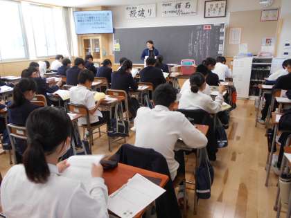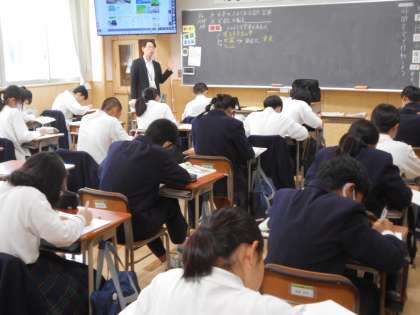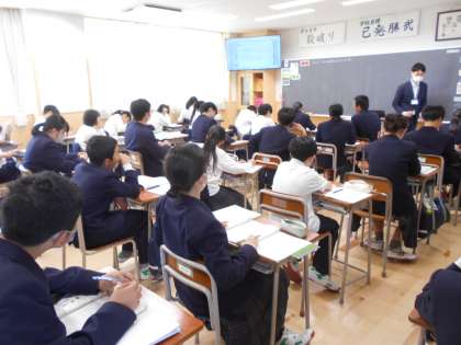 3組地理では、災害の話からデジタル教科書の東日本大震災の動画を見ました。3組には震災が発生した日に生まれた人がいました。