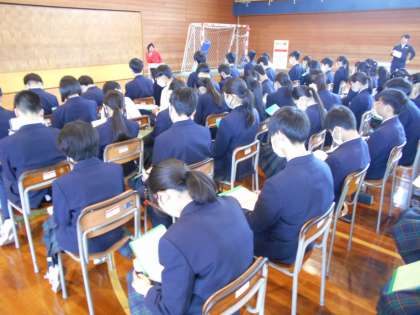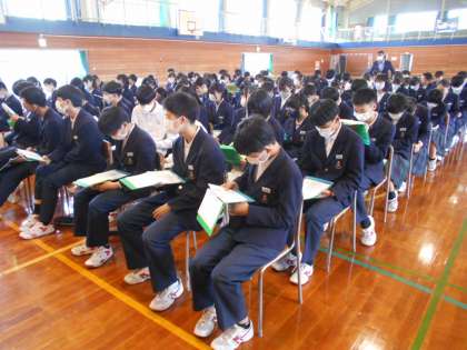 3年生は学年集会を開き、修学旅行の行程確認や注意事項の説明等を行いました。