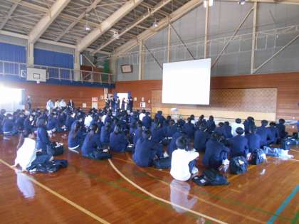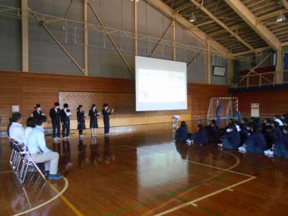 明日からの修学旅行に先立ち、出発式を行いました。スローガンやきまりの確認や、引率の先生の紹介の後、校長からの「みんなが楽しかったと思える修学旅行にするためには、一人一人の少しのがまんが必要です」という言葉を大切にして、3日間の活動に臨みたいと思います!