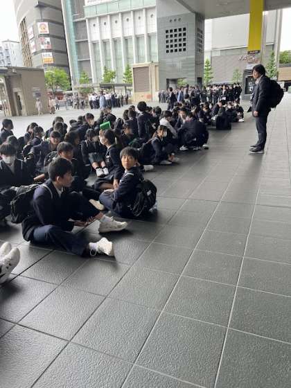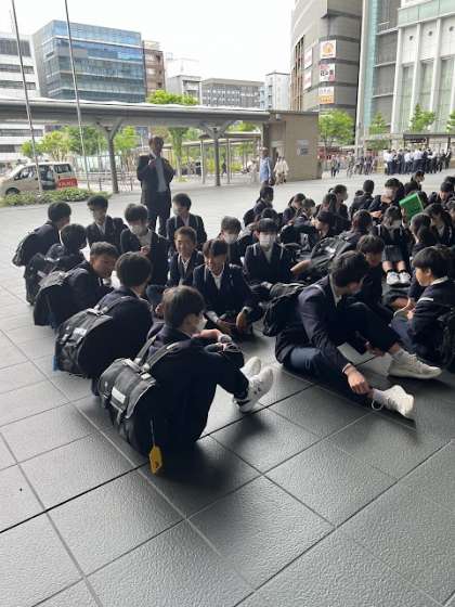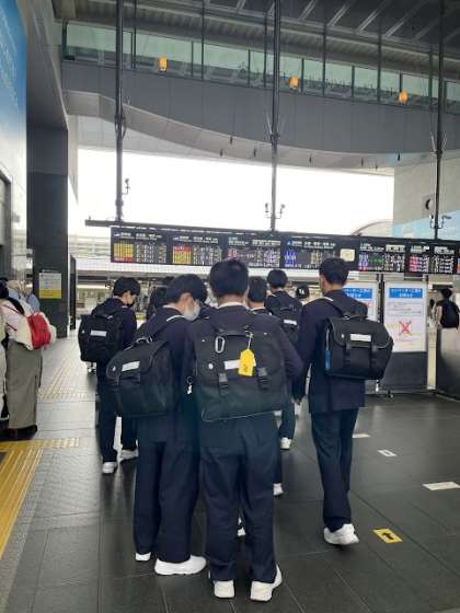 9:40頃に京都駅に到着しました。京都班別学習の前に諸注意を聞いて、10:00頃に京都駅を出発しました。