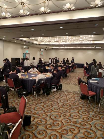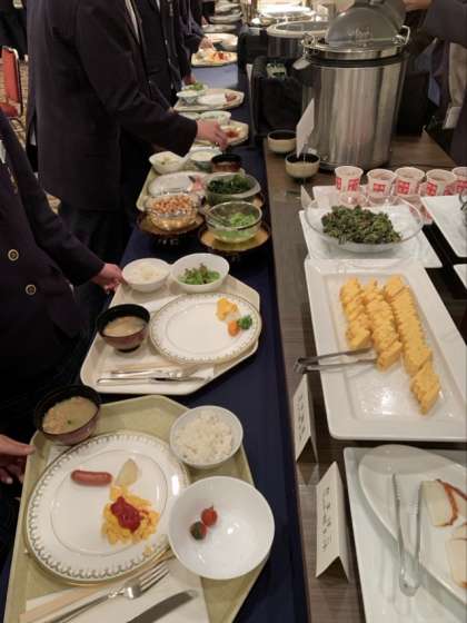 おはようございます。修学旅行2日目の朝です。朝食は、ビュッフェスタイルでした。食べられる量を考えて取り分けていました。