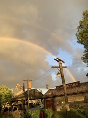 強い風でアトラクションが度々止まったり小雨が降ったりしましたが、無事一日の活動を終えることができました。夕立の後、陽に照らされて綺麗な虹を園内から見ることができました。