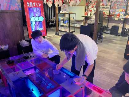 金魚ミュージアムでは、金魚すくいやボールすくい、プロジェクションマッピングを体験しました。