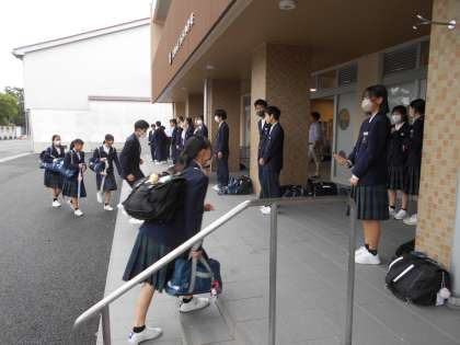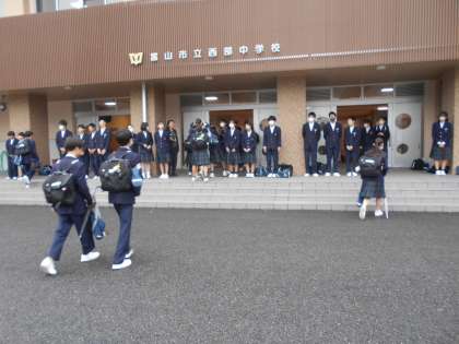生徒会の挨拶運動が行われます。今朝は生徒会役員と2年生学級代表が登校する人に「おはようございます。」とさわやかに声をかけてくれました。