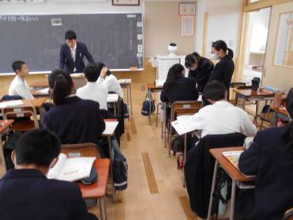 今週末には中間考査があります。3組英語では、分からない問題を友達と相談しながら解いていました。