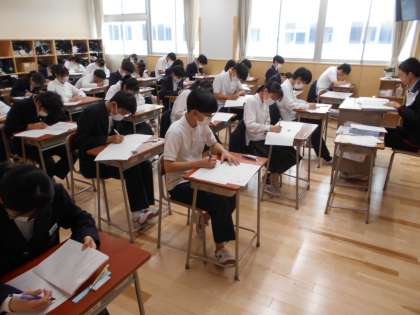 1週間前のこの時間帯は修学旅行で大阪市内を巡っていました。皆、しっかりと切り替えて今日からの中間考査に臨めているようです。