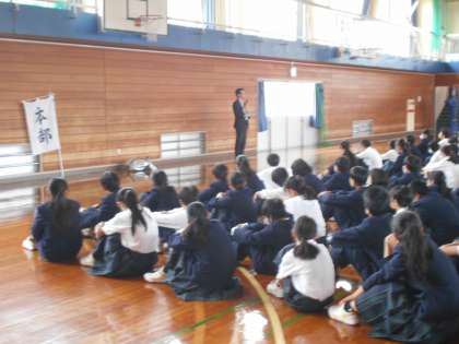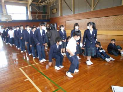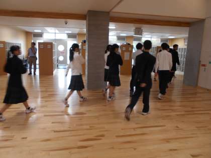 新校舎での避難訓練。緊張感をもって取り組めました。