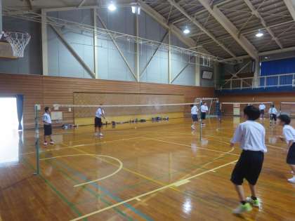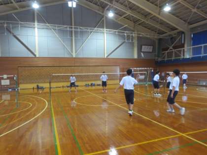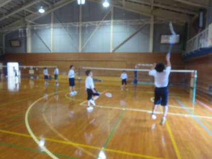 1年生は休日の部活動に初めて参加しました。ランニング、ラケットの持ち方、素振り等の基礎練習のあと、1年生同士で打ち合い汗を流しました。