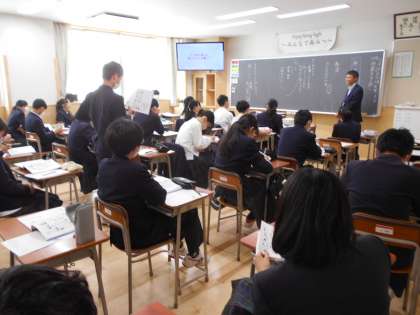 2組道徳では他の先生や教育実習生が参観し、生徒も活発に意見を述べる活気ある授業となりました。