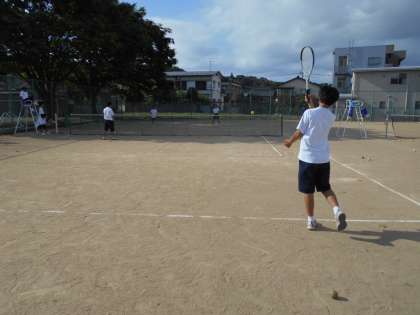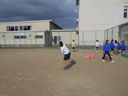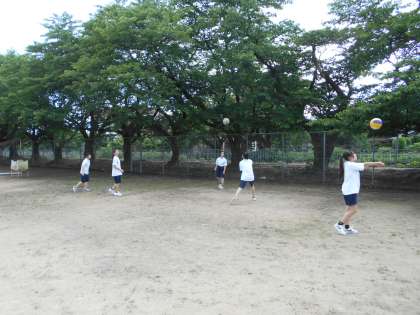 男女ソフトテニス部は天気がよく、思い切りコートが使えてご機嫌で活動していました。それに対して、バレーボール部は残念ながら体育館割り当てがない日でしたが、工夫して取り組んでいました。