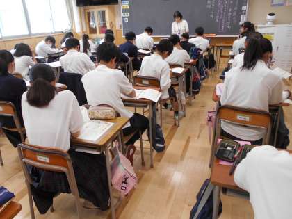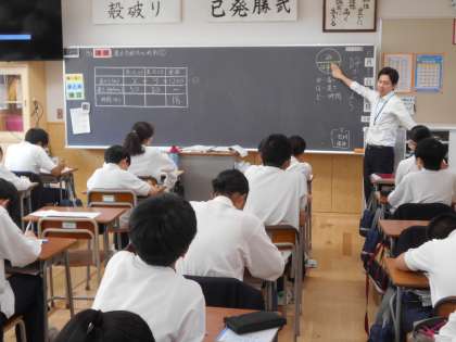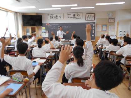 1組数学では、「小テスト、全部解けた人?」の問いかけに一斉に手が挙がりました。