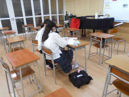 期末考査期間の今週、放課後、生徒会が自習室を開放しています。今日は4名が利用。家よりも学校の方が集中できる人、ぜひ利用してみよう。