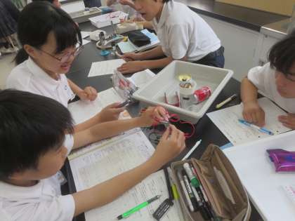 金属と金属でないものを見分ける方法について、実験を通して考えているところです。