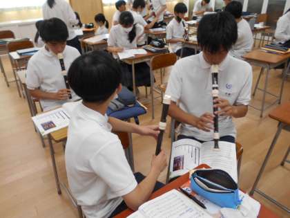 2組音楽は、次回のリコーダー演奏テストに備え、皆、真剣に練習していました。