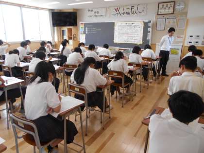 期末考査2日目になりました。1学期の学習面の成長を確認するテストです。今日も頑張りましょう。そういえば、廊下のミニトマトもずいぶん成長しました。
