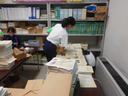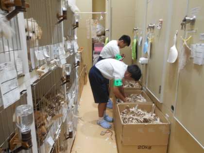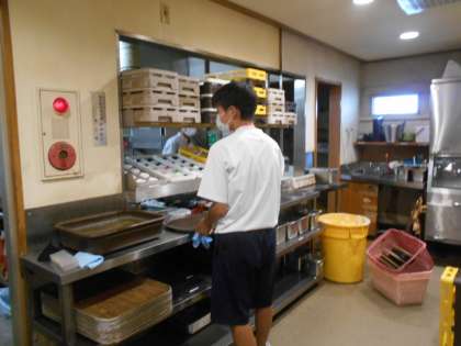 今日から「社会に学ぶ『14歳の挑戦』」スタートです。みんな精力的に働いています!バックヤードで働く2年生の姿です。